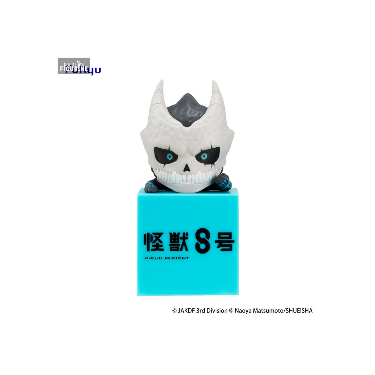 FuRyu, with its Hikkake collection, has once again managed to capture the essence of an iconic character with this figure. At 10cm high, this PVC piece is perfect for shelves, desks or any collection space. It features Kaiju No. 8 with his disproportionate head and determined expression, resting on a turquoise cube bearing the series name in Japanese.