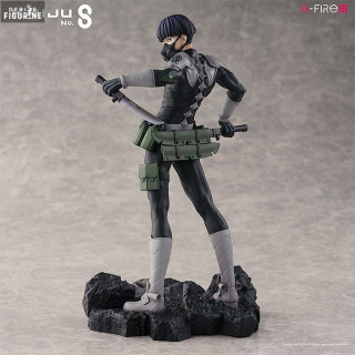This figurine stands out for its dynamic posture and striking realism. Soshiro is represented in a combat stance, ready to draw his katana with a precision and elegance characteristic of his character. Dressed in his black and green combat uniform, every detail of his equipment is meticulously reproduced, from the pockets and military accessories to the protections on his legs