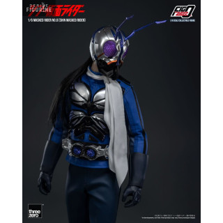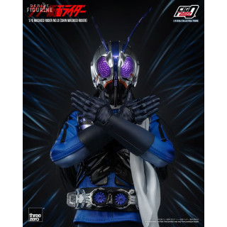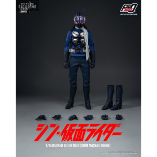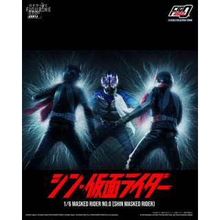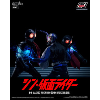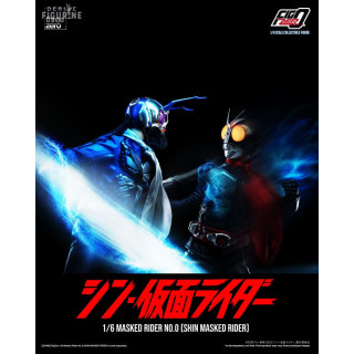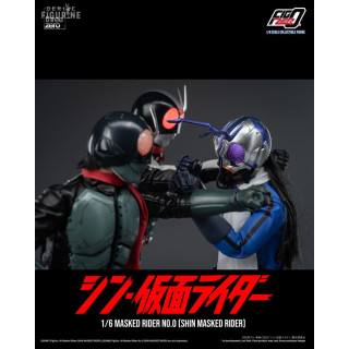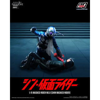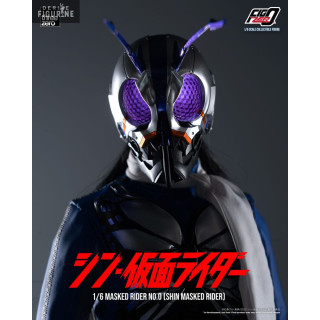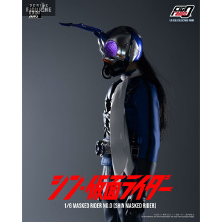 Official figure of Masked Rider No.0 (Shin Masked Rider) which measures approximately 30 centimeters high, scale 1/6. It is from the FigZero collection. The manufacturer is ThreeZero.