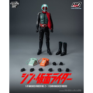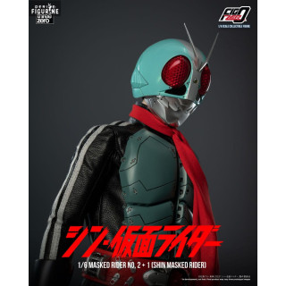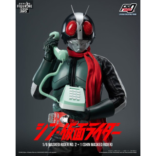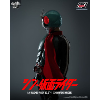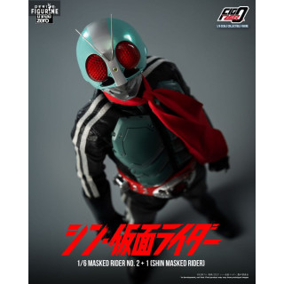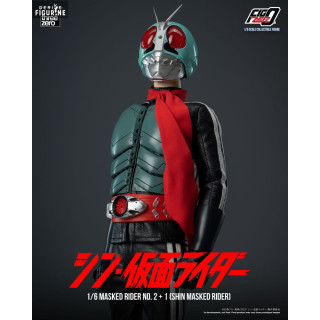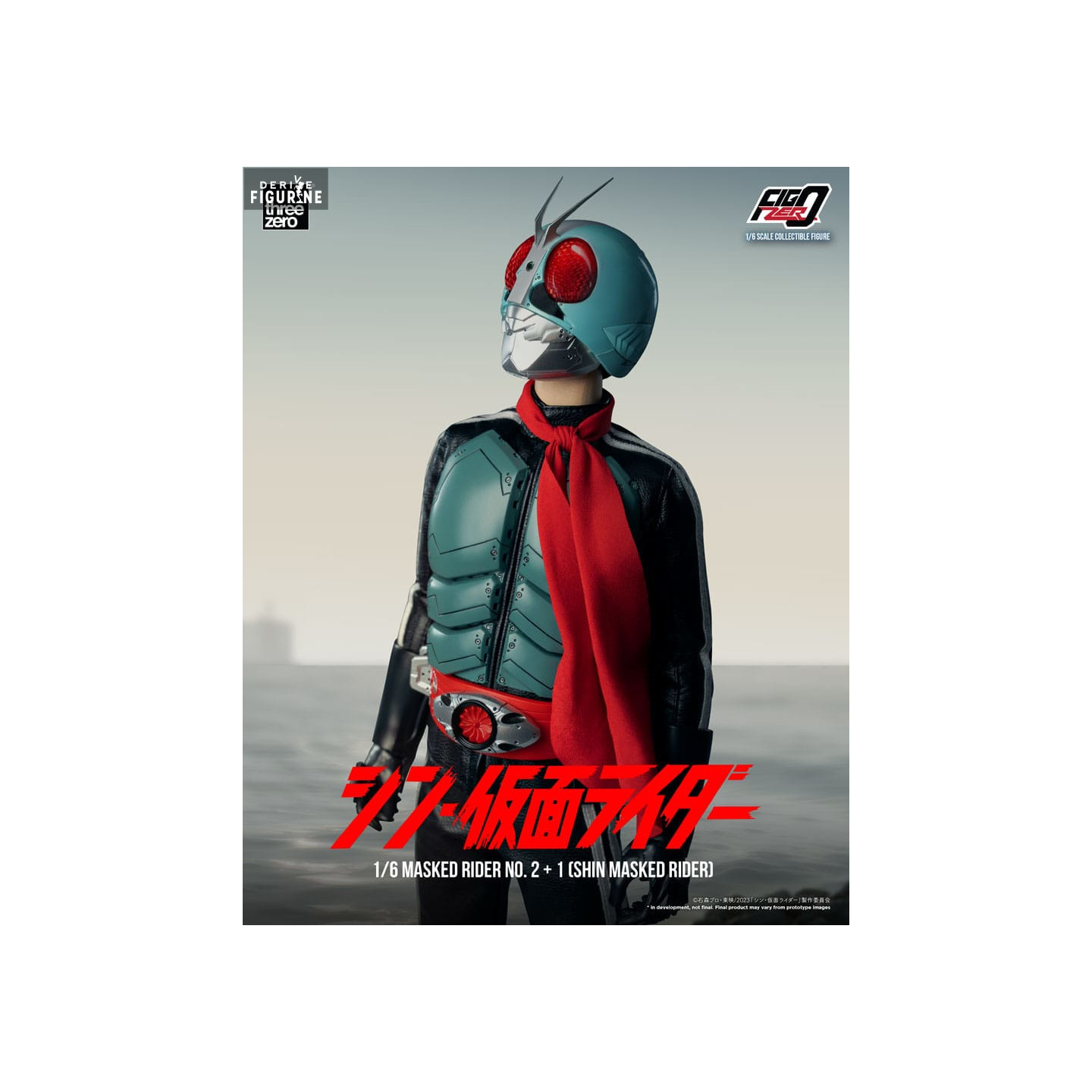 Official figure of Masked Rider No.2+1 (Shin Masked Rider) which measures approximately 32 centimeters high, scale 1/6. It is from the FigZero collection. The manufacturer is ThreeZero.