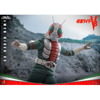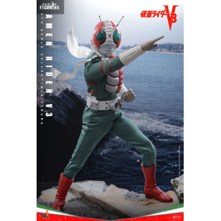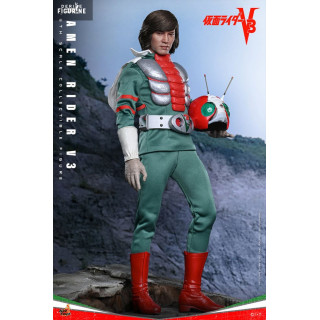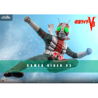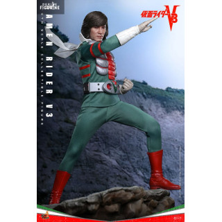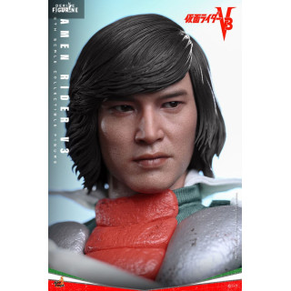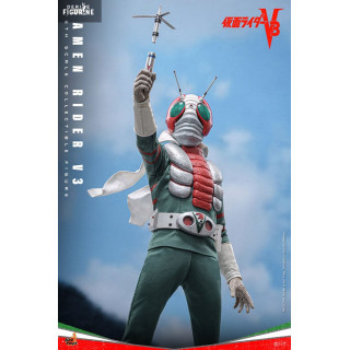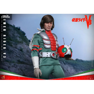Official figure of Kamen Rider V3 which measures approximately 30 centimeters high, scale 1/6. The manufacturer is Hot Toys.