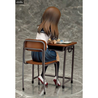 Takagi is a young college girl who spends most of her time teasing her friend Nishikata to see how he will react. Seeing her leaning in this way on her desk, it looks like she's looking for what a joke she'll be able to do to her comrade.