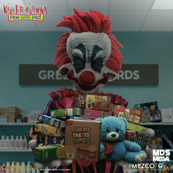 Killer Klowns from Outer Space is that wonderfully weird mix of sci-fi, horror and circus aesthetics that turned into a cult classic. Rudy is one of the alien clowns wreaking havoc on Earth, and this official doll brings him into your collection at a much larger scale. Produced by Mezco Toys as part of the MDS Mega Scale line, the figure stands about 38 cm tall and features a PVC body dressed in real fabric clothing for a look that feels straight out of the movie.