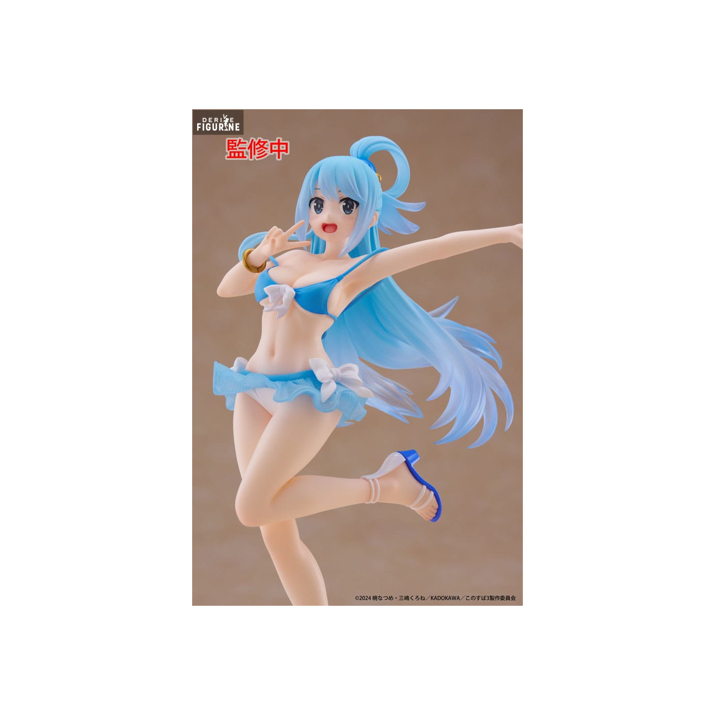 Dive into the wacky world of Kono Subarashii Sekai ni Shukufuku o! with this PVC figure of Aqua, the mischievous and hilarious goddess, in her Swimwear version. Standing approximately 18 cm tall and produced by Taito for the Coreful collection, this figure captures all the energy and carefree nature of this vibrant character.