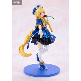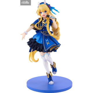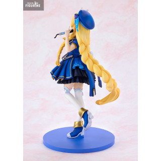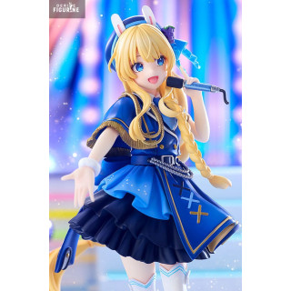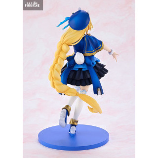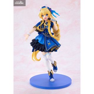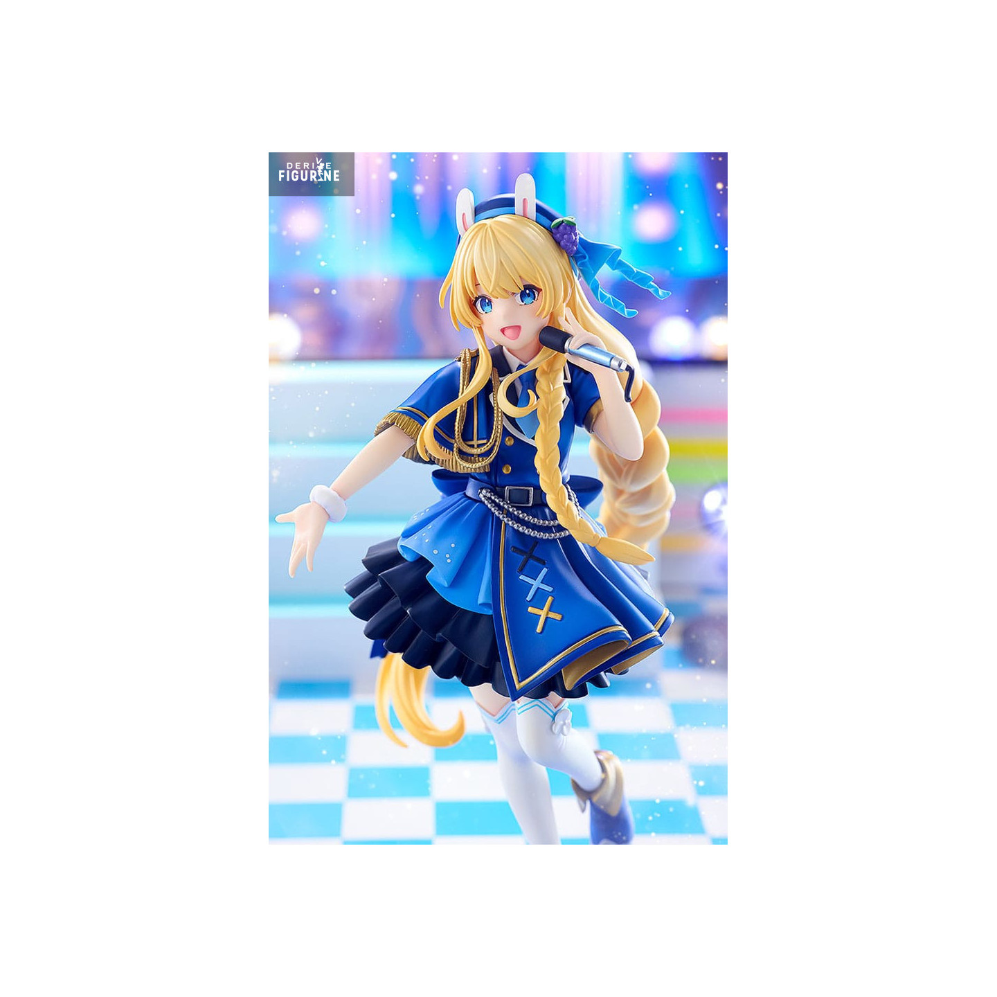 In this Light Novel Idol version, Kadokawa presents Iris in a vibrant and elegant idol outfit. Dressed in a detailed blue costume with golden and black accents, holding a microphone, she looks ready to charm her audience on stage. Her long blonde braid enhances her dynamic appearance, while the bunny ears add a whimsical touch to her look. This 16 cm PVC figure by Kadokawa pays tribute to Iris’s gentle nature and spirited determination. Every detail, from the folds of her skirt to the decorations on her outfit, is meticulously crafted to capture the essence of this princess idol.