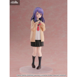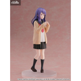This official figure of Nagisa Kubo delicately captures the innocence and sweetness of the character, as she appears in the manga and anime "Kubo Won't Let Me Be Invisible." Nagisa Kubo is a playful and lively girl who doesn't hesitate to push Shiraishi, the protagonist, out of his comfort zone. Despite her teasing personality, Nagisa exudes an aura of kindness and warmth, making her irresistible in the eyes of fans of the series. In her classic school uniform, she appears thoughtful and shy, holding something in her hands with a gentle expression on her face. Her long, elegantly sculpted purple hair, falling in soft waves, adds a touch of color and liveliness to the overall figure.
