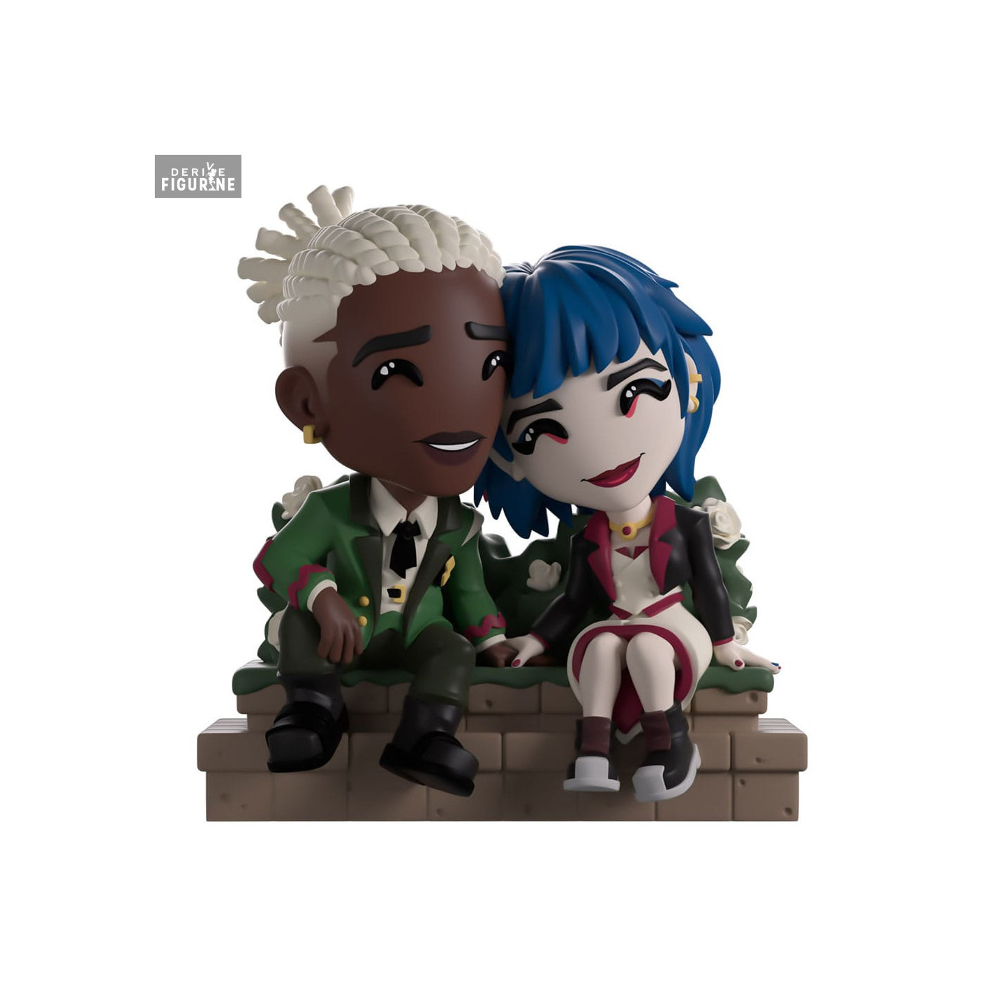 In the vibrant world of Arcane, Ekko and Powder embody childhood innocence and dreams, long before their paths tragically diverge. This vinyl figure by Youtooz captures a heartwarming moment: the childhood friends seated side by side on a flower-decorated wall, sharing a tender bond that reminds us of simpler days.