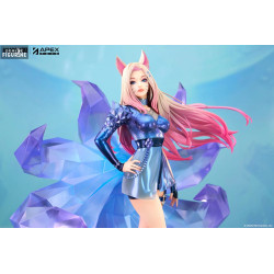 Standing at approximately 27 cm tall and sculpted at 1/7 scale, this PVC figure by Apex Innovation is a masterpiece of detail. The translucent tails reflect light beautifully, while the iridescent finish on her outfit adds a touch of stardom. Mounted on a sleek, arrow-shaped base, this figure perfectly captures Ahri’s futuristic pop-star persona.