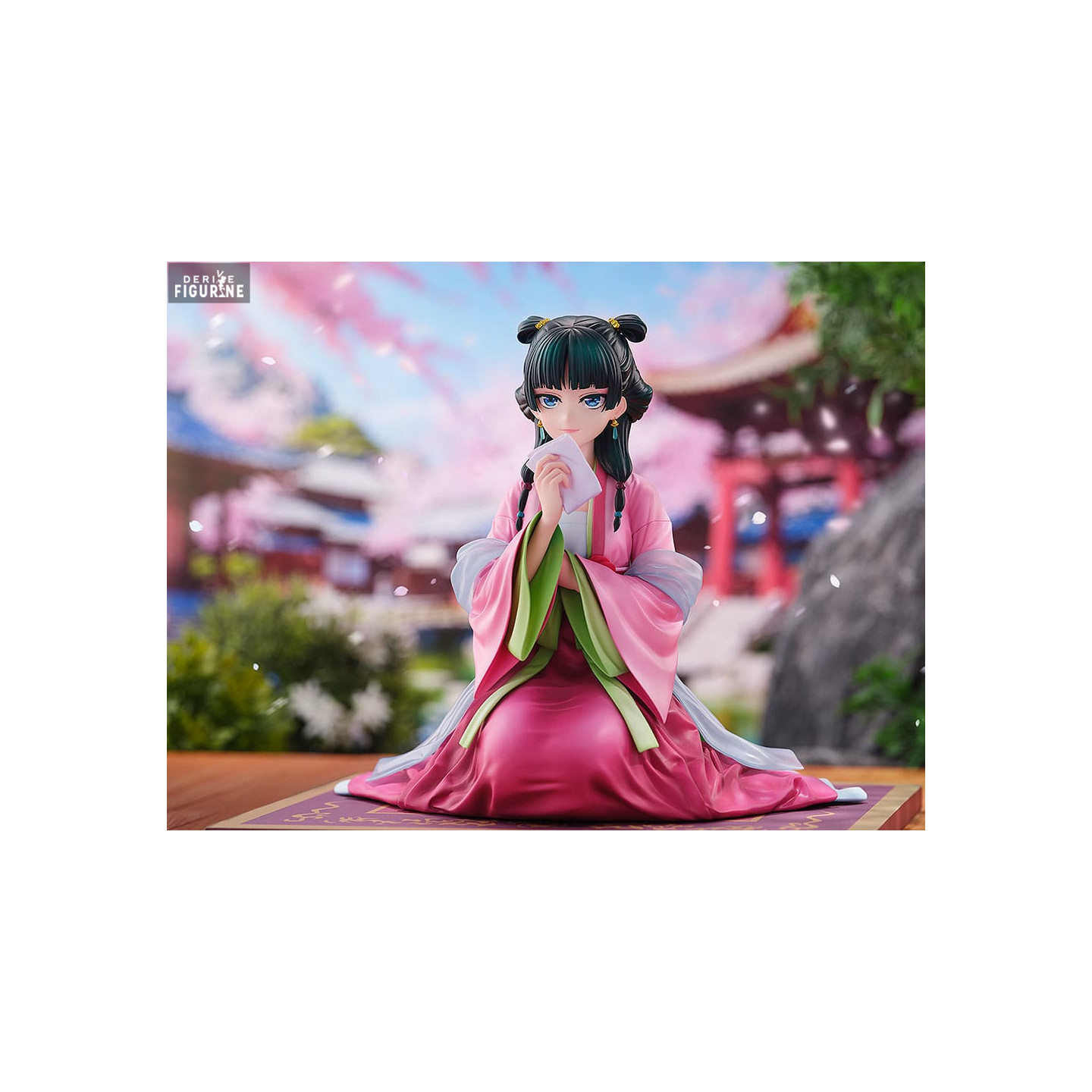 This Maomao figure from the Garden Party collection is an elegant and detailed representation of this charismatic character. Measuring approximately 20 centimeters tall and at a 1/7 scale, this piece crafted by Wonderful Works captures Maomao in a graceful pose, sitting with a serene expression, delicately holding a handkerchief. The intricate details of her traditional attire, adorned with subtle floral patterns, and the vibrant color nuances of her robe add a touch of refinement to this figure. The decorative base on which she rests perfectly completes the scene, creating a calm and soothing atmosphere, worthy of a true work of art.
