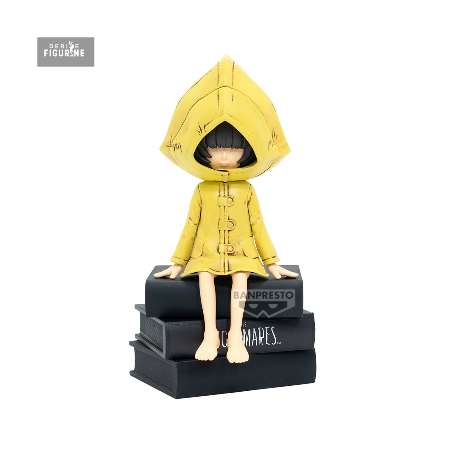 This approximately 12 cm PVC sculpt shows Six seated atop a stack of black books titled The Nightmares, marking the boundary between reality and waking nightmare. Every worn detail of her yellow coat speaks of her ordeals: pronounced folds, subtle scuffs, and soft discolorations. Her dark hair, weighed down by the hood, and her slender fingers resting lightly on the base amplify the sense of a delicate figure in precarious balance.