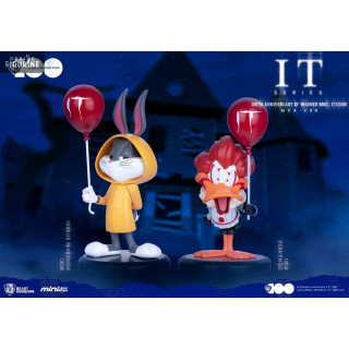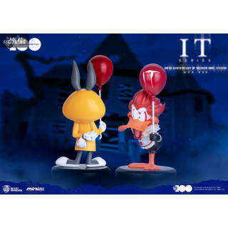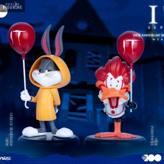 The Looney Tunes 100th Anniversary of Warner Bros. Bundle Studios includes two figures representing Bugs Bunny and Daffy Duck in versions inspired by the movie "It's Back". Bugs Bunny is portrayed as Georgie, and Daffy Duck is portrayed as Pennywise. These figures are part of the Mini Egg Attack collection, featuring a unique, deformed style that adds a fun twist to iconic Looney Tunes characters. This is an ideal pack for Warner Bros fans. Studios and classic Looney Tunes characters.
