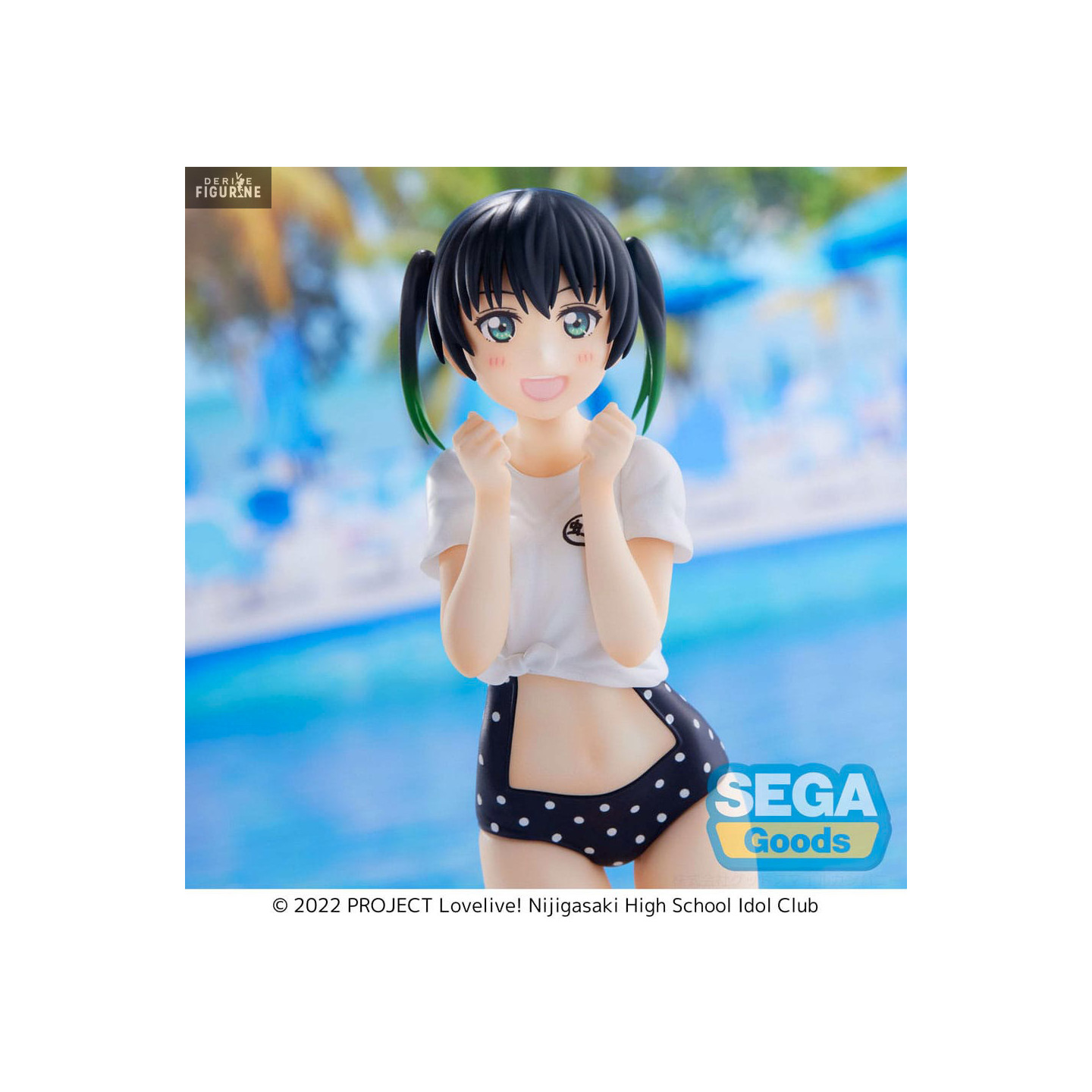 Yu Takasaki is a young girl starting up with the other idols of Nijigasaki High School and who can trust. She loves to be idol, but she also happens to her from time for her and this is the case here on the point more. She has a swimsuit with an original style, but we do not carefully see because at the top, she wears a t-shirt. In any case, she looks enthusiastic.