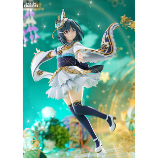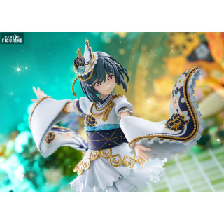 Shioriko Mifune is a character with a unique charm, known for her passion for music and dedication to her fellow members of the Nijigasaki Academy Idol Club. In this figure, she is portrayed in a stunning performance outfit, adorned with golden details and intricate patterns that reflect her distinctive style and idol spirit. Her flared skirt, edged with delicate lace, twirls around her, capturing a moment of movement and emotion.