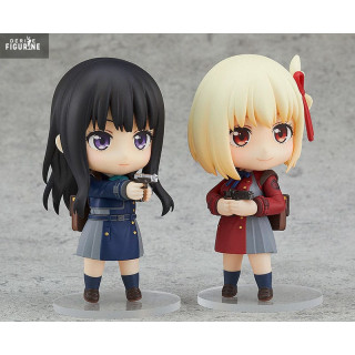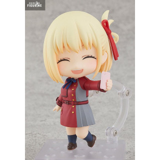Official figure of Chisato Nishikigi in PVC which measures approximately 10 centimeters high. It is from the Nendoroid collection. The manufacturer is Good Smile Company.