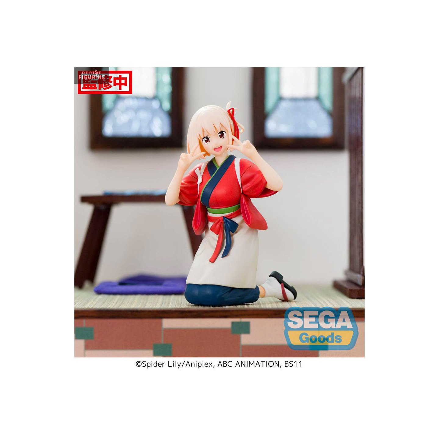 Official figure of Chisato Nishikigi in PVC which measures approximately 14 centimeters high. It is from the PM Perching collection. The manufacturer is SEGA.