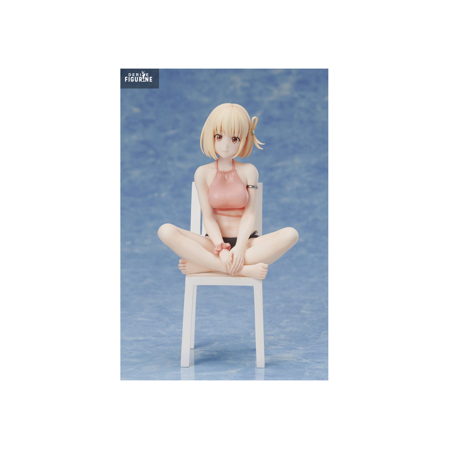 Crafted by Aniplex at 1/7 scale, the 16 cm figure features fine sculpting, from the flow of her hair to the folds in her clothes. The minimalist setup, with only a chair as a base, highlights the peaceful atmosphere — like catching Chisato between two whirlwind moments.