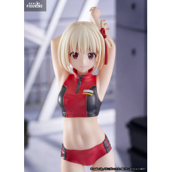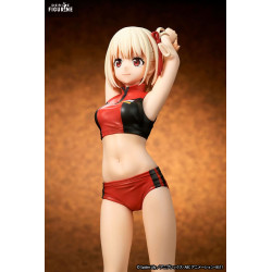 Official figure of Nishikigi Chisato, Traning wear in PVC which measures approximately 24 centimeters high, scale 1/7. The manufacturer is Ques Q.
