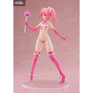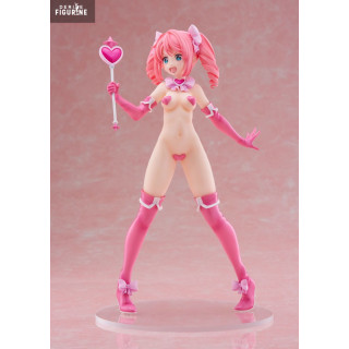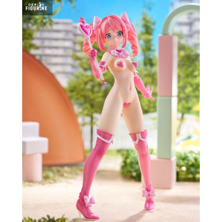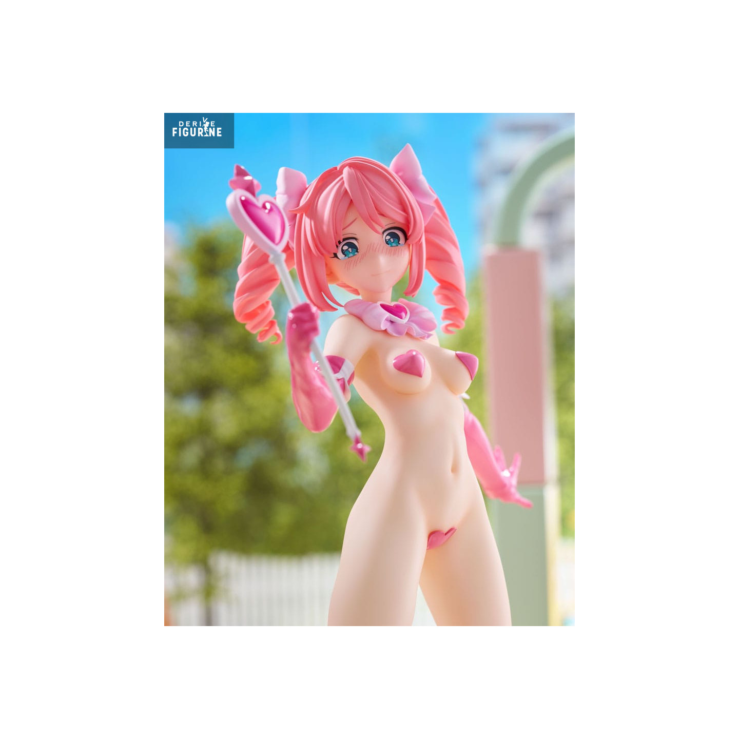 Magia Magenta is depicted in a playful and dynamic pose, dressed in her daring magical warrior costume, typical of the heroines in this universe. Her minimalist outfit, in vibrant pink tones, features heart-shaped motifs that highlight her powers and her role as a protector in the story. In Zettai Junpaku Mahou Shoujo, Magia Magenta is part of a group of magical girls tasked with defending the world against dark forces, embodying a colorful yet provocative aesthetic that blends innocence and sensuality.