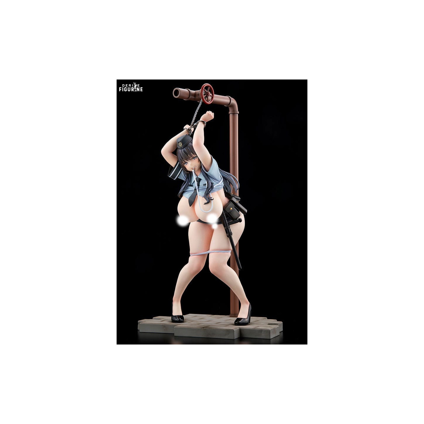 Heads up, this one’s for experienced collectors! Meet Akari Hiyoshi in a bold and provocative setup crafted by manufacturer FROG. Standing tall at around 42 cm, this impressive figure is definitely not for the faint-hearted. Akari, an original character, is depicted in a daring pose—handcuffed and tied to an industrial pipe, dressed in a risqué police uniform that pushes boundaries.