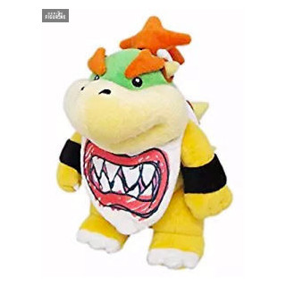 Super Mario Bros plush representing Bowser Jr., which measures approximately 23 centimeters high. The manufacturer is Little Buddy Toys.