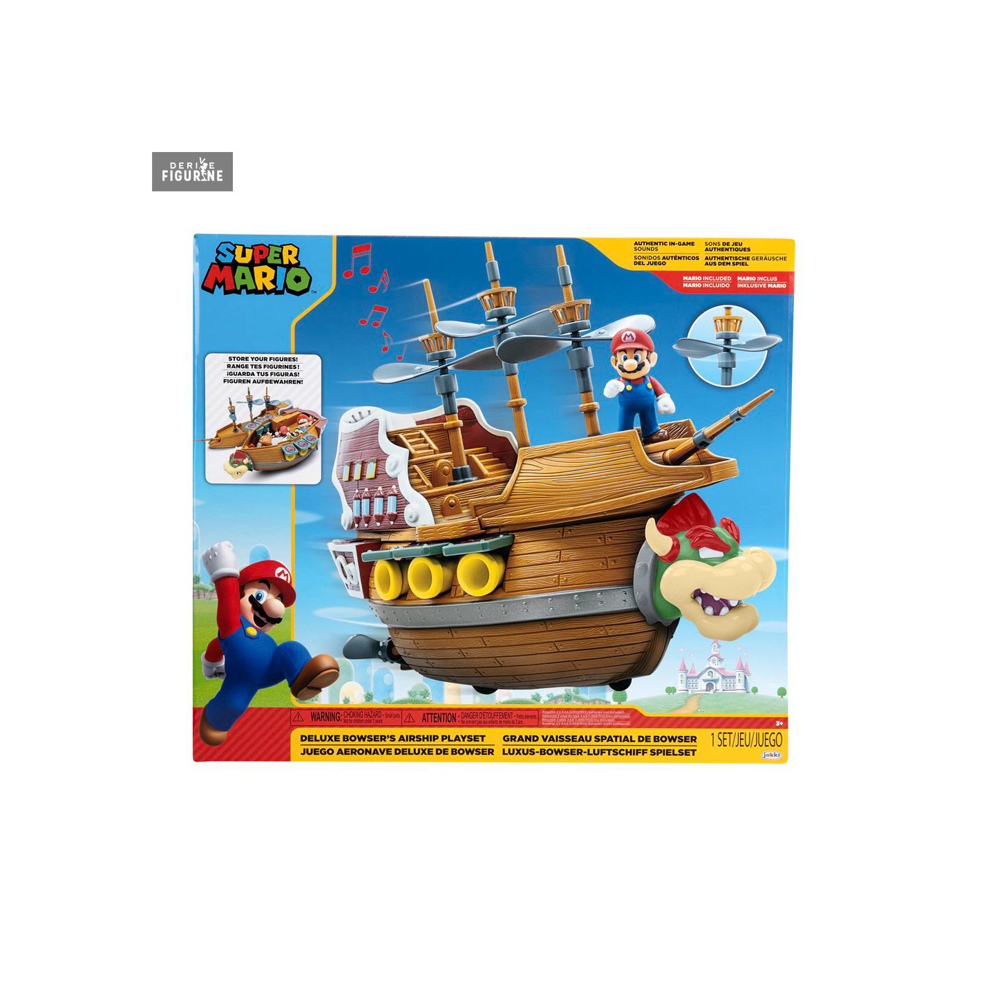 This Deluxe replica and figurine comes straight from the Nintendo Super Mario universe. It represents the huge aircraft that Bowser uses in the game and where Mario must board in order to put a spoke in the wheel for the big bad! This Deluxe playset is sold with a figurine and the aircraft has many possibilities.