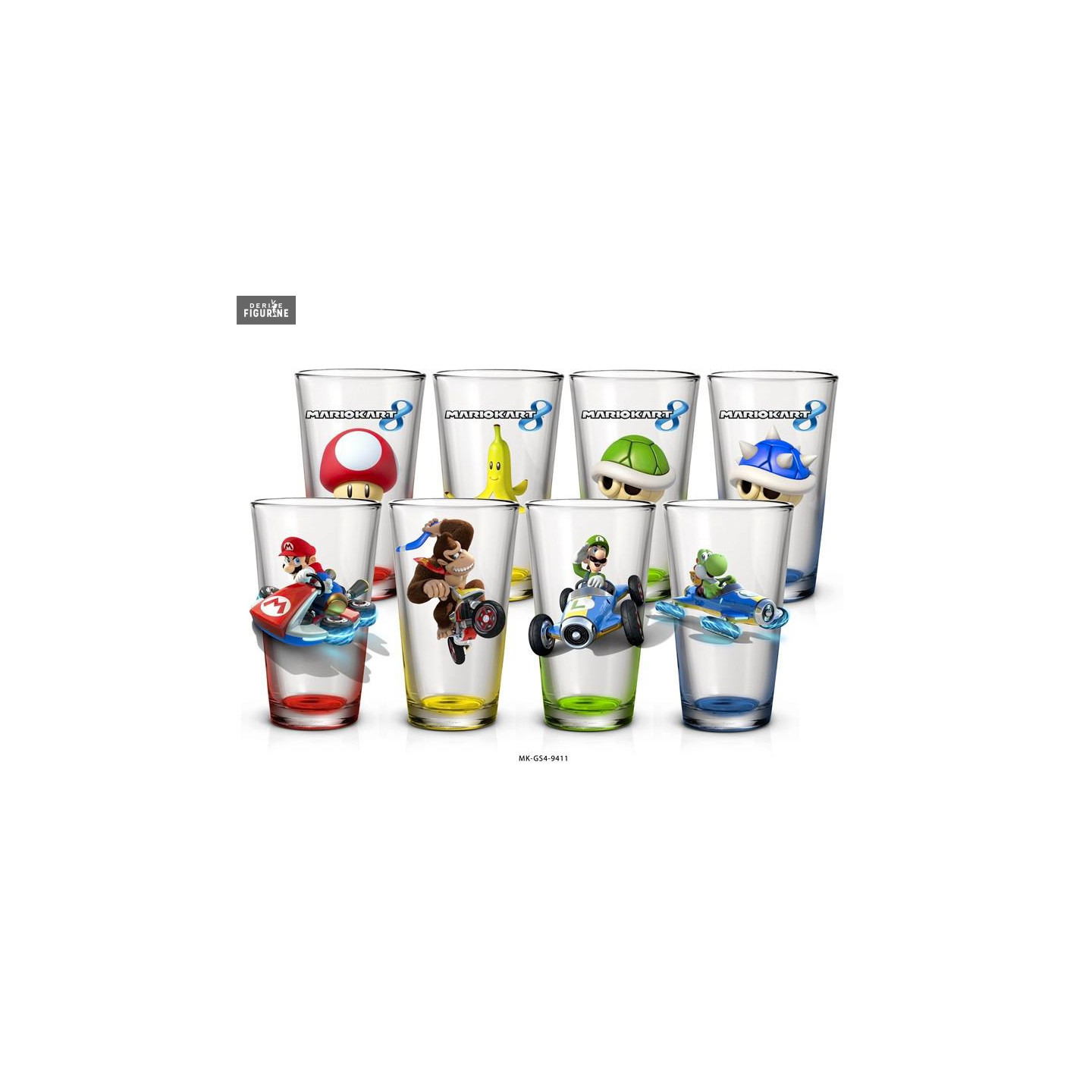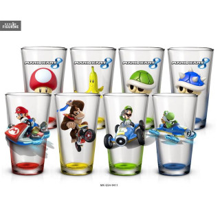Set of four Mario Kart 8 glasses. The manufacturer is Just Funky.