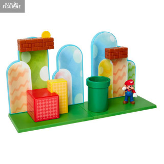 Step into the vibrant world of Super Mario with the Acorn Plains Playset. This diorama faithfully recreates one of the franchise’s most iconic starting levels, where Mario jumps on colorful blocks, hits mystery bricks, and explores the famous green pipes that often lead to hidden areas.