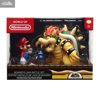 Official figures of Bowser's Lava Battle set which measure approximately 6 - 15 centimeters high. The manufacturer is Jakks Pacific.