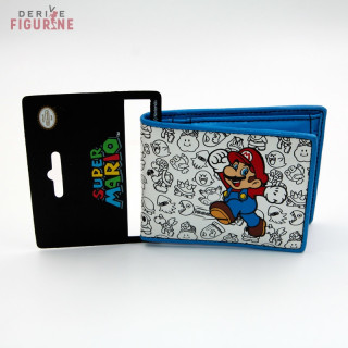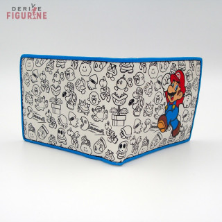 Super Mario wallet that measures approximately 11x8,5 centimeters closed with several tidies for cards, banknotes and coins. The manufacturer is Bioworld.