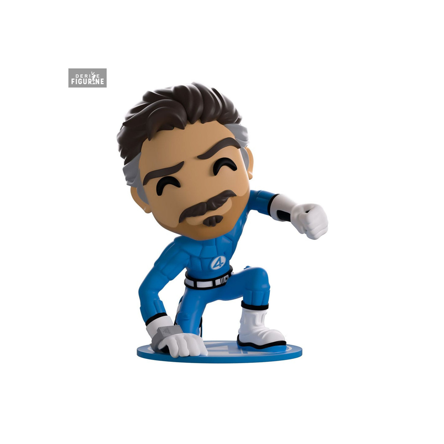 This official Youtooz figure shows him in a dynamic and friendly pose: crouched with one hand on the ground and the other ready to reach forward, he wears a wide smile and cheerful eyes. His signature blue suit with the “4” emblem is faithfully recreated, along with his white gloves and matching boots. His brown hair, accented with gray streaks at the temples, completes his unmistakable look.