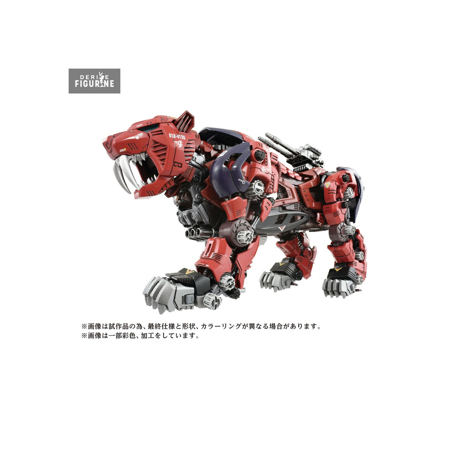 The Saber Tiger, with its feline features and futuristic design, is carefully reproduced in detail in this plastic model. The assembly process allows you to discover the different parts and mechanisms that make up this emblematic mechanical creature from the Zoids universe.