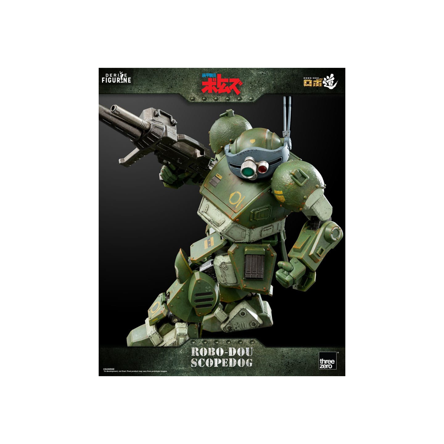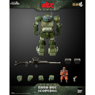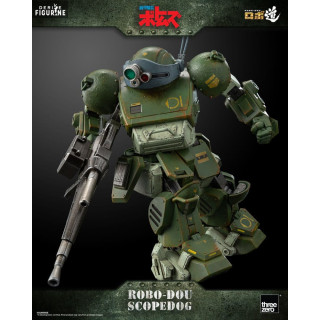 The Robo-Dou Scopedog figurine by ThreeZero is a faithful representation of the famous Armored Trooper from the animated series “Armored Trooper Votoms”. This collector's item, with a height of approximately 14.6 cm, is made with high quality materials such as ABS, PVC, POM and die-cast zinc alloy.