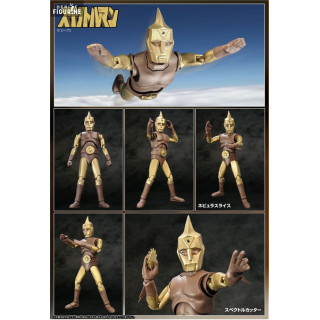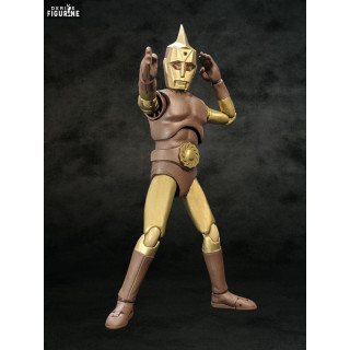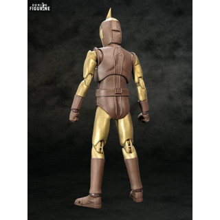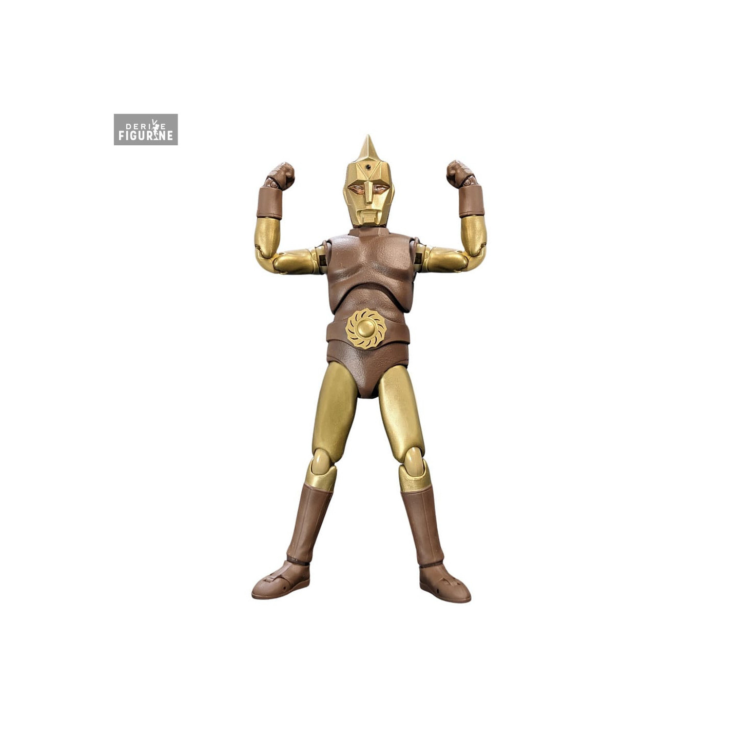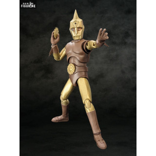 Specter Man is depicted in a dynamic pose, ready to defend Earth against the forces of evil. Its retro design, faithful to the original, is enhanced by meticulous details and vibrant colors. The figure perfectly captures the essence of this iconic superhero, with his distinctive helmet and golden armor.