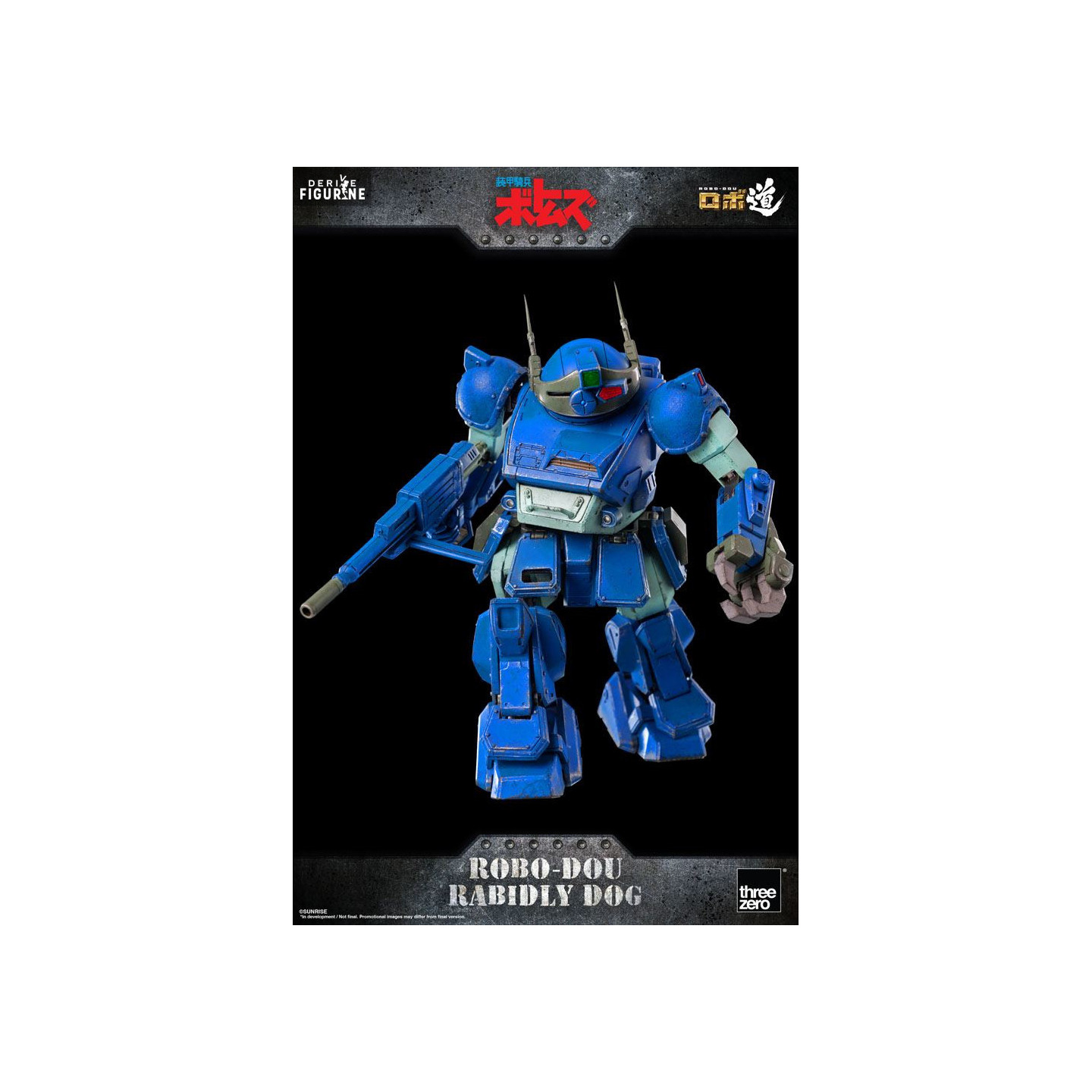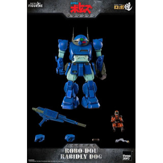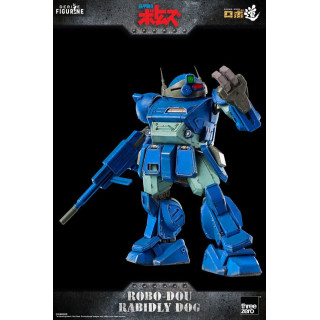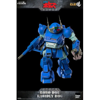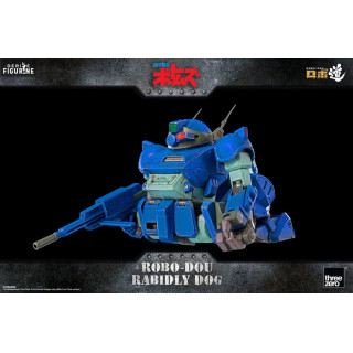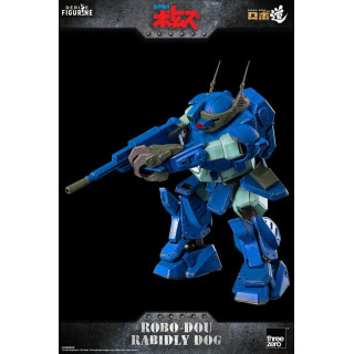 Experience mechanical power and military precision with this official Robo-Dou Rabidly Dog figure from the Armored Trooper VOTOMS universe. Manufactured by ThreeZero, this figure stands approximately 6 inches tall and perfectly captures the rugged details and imposing appearance of the iconic mecha.