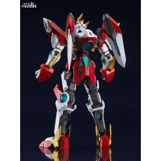 Bravern is part of the powerful and dynamic mecha genre, where human pilots control giant robots to defend Earth or battle intergalactic foes. With its red, white, and gold color scheme and sharp lines, Bravern exudes a sense of power and technological sophistication. The design features intricate details, such as articulated parts and a finely sculpted armor, typical of Moderoid models.