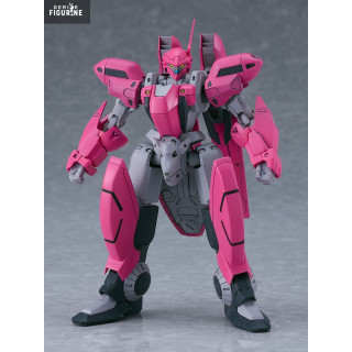 The Aestivalis 0G Battle Frame is known for its futuristic style and exceptional combat performance in space. The figure perfectly captures the mecha's robust and agile appearance, featuring intricate details and joints that allow it to be posed in various combat stances. Its vibrant pink armor is true to its original appearance, adding a bold touch to the overall design.