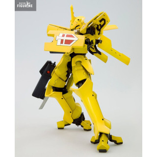 The Broken Blade universe is set in a world where magic and technology intertwine. Machines like Eltemus are powered by magical crystals, and piloting them requires perfect synchronization between the pilot and the machine. This version of Eltemus stands out with its bright yellow color scheme, along with military logos and insignias that enhance its combat-ready appearance.