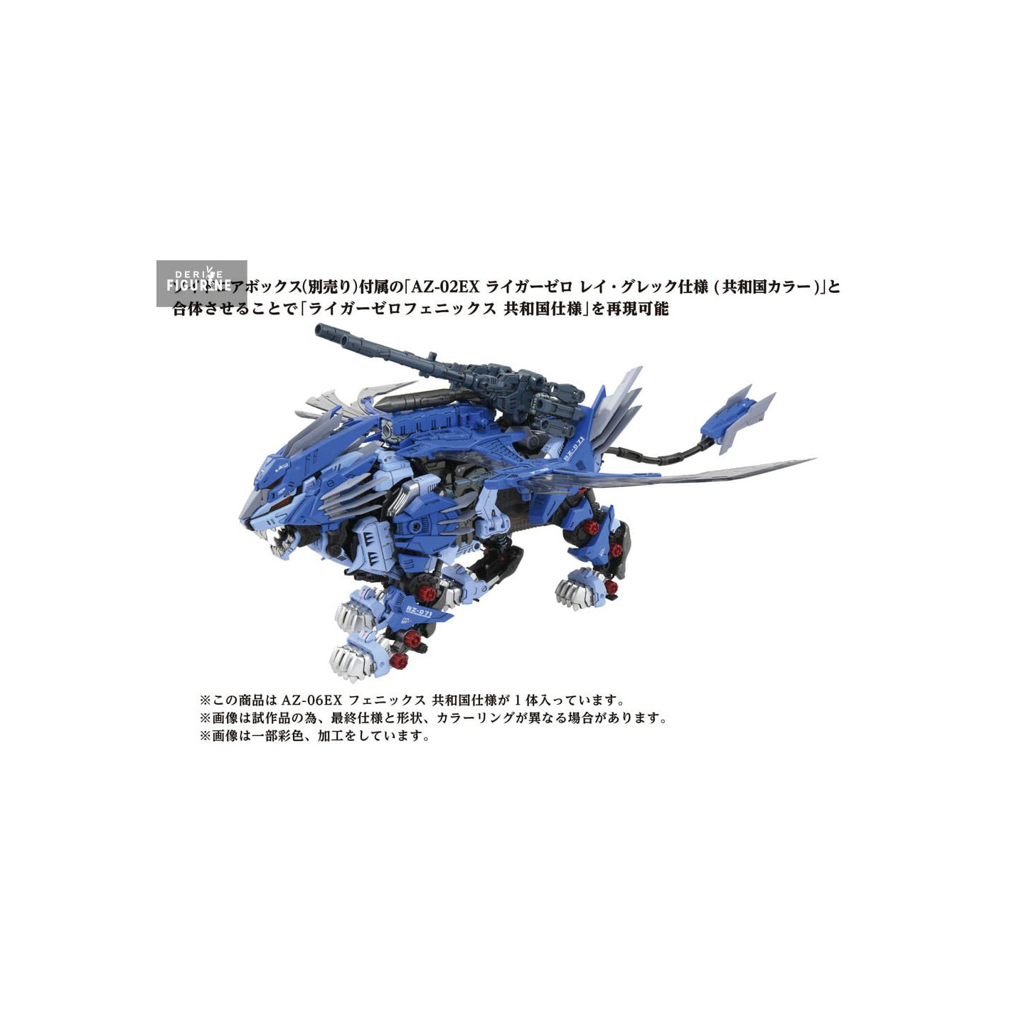 Inspired by the iconic Zoids universe, the AZ-06EX Phoenix - Republic Version figure stands as a centerpiece for collectors and mecha enthusiasts alike. Paying tribute to the legendary saga that blends mechanical battles and science fiction, this model showcases an avian Zoid with an impressive design, crafted to dominate the skies and crush opponents with relentless grace. In this Republic version, the intricate details and precise colors highlight the advanced technological features of combat machines used by the Republican forces in this rich and immersive world.