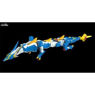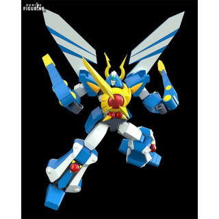 In the Kanzen Shouri Daiteioh universe, Dairyuoh stands as one of the most powerful robots, embodying the strength and heroism needed to face the fiercest threats. With its vibrant blue, white, and yellow colors and its angular, imposing design, this representation stays true to the classic mecha style of the 90s. The majestic wings and intricate armor details add to Dairyuoh's imposing presence, making this figure a must-have for any fan of the series.