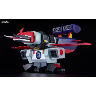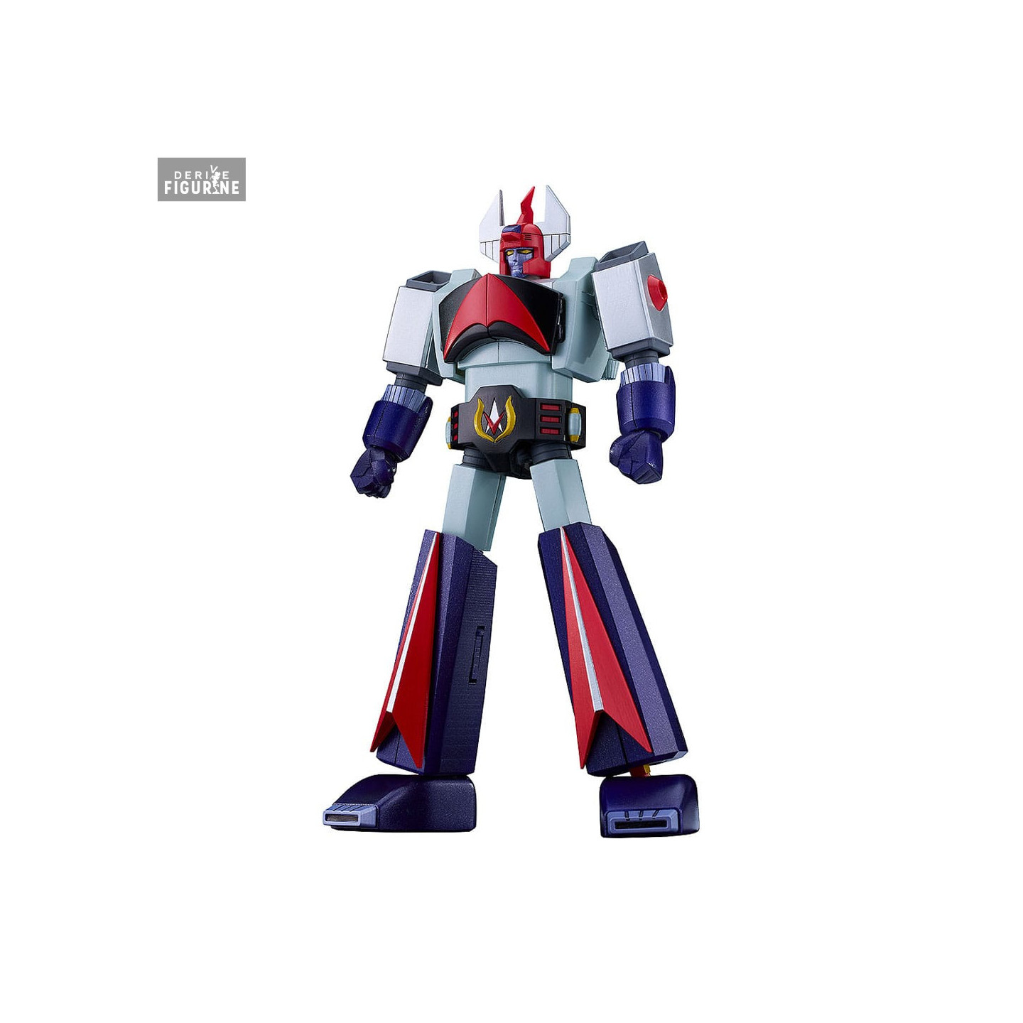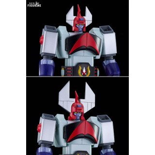 Standing approximately 18 cm tall once assembled, this articulated plastic model kit brings the vintage mecha back to life with incredible faithfulness. The angular silhouette, bold red and navy-blue palette, and signature horned helmet all reflect the distinct 70s robot aesthetics created by Leiji Matsumoto.