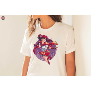 Women's T-shirt by Mev Gardenia. It is made of 100% cotton in 150 g/m², with a fitted cut and a round neck. Printed and fashioned by Abysse Corp, designed by Derive Figurine.