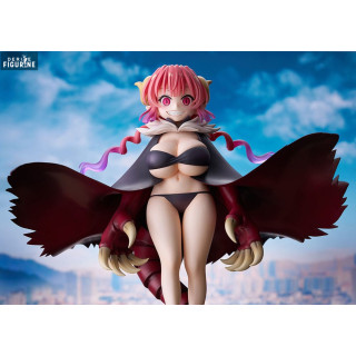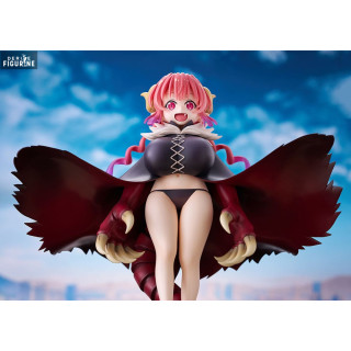 This 1/7 scale figure captures Iruru's iconic appearance. Her silhouette emphasizes her dragon traits, including her horns, dark wings, and claws, while maintaining her human form. She is depicted with a joyful and mischievous expression, true to her character in the anime. Made of PVC, this figure stands approximately 22 centimeters tall. Her floating pose reflects both the power and lightness of her dragon nature. The meticulous detailing, from her bright eyes to her golden horns and intricately sculpted wings, highlights the care put into crafting this piece.