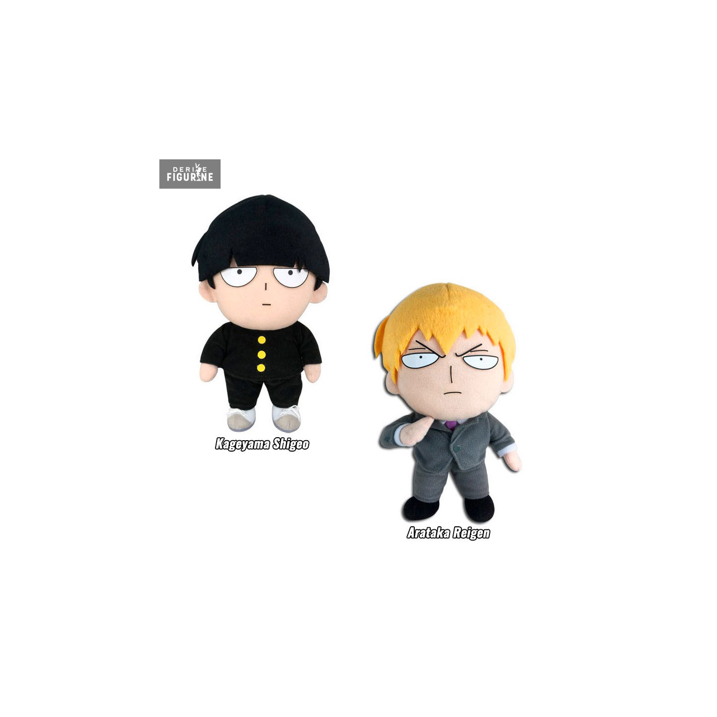 Official plush of your choice of Kageyama Shigeo or Arataka Reigen in polyester about 20 centimeters high. The manufacturer is GETC.