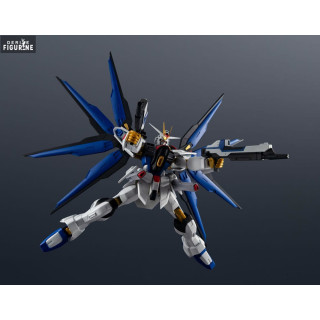 Immerse yourself in the cosmos of interstellar battles with the ZGMF/A-262B Strike Freedom Gundam Type II figure from "Mobile Suit Gundam Seed", proudly presented by Bandai in their Gundam Universe line. This model represents a remarkable innovation, carrying the torch of the heroic Freedom Gundam, but with upgrades that multiply its combat power. He is the embodiment of freedom and power, piloted by veteran peacekeeper Kira Yamato.