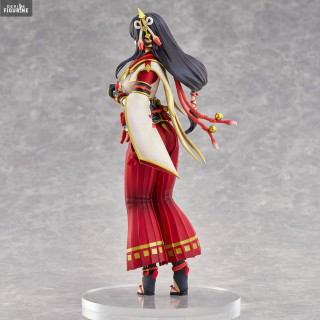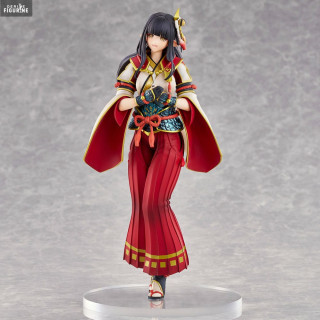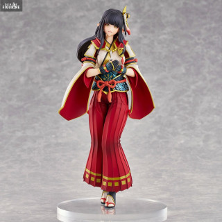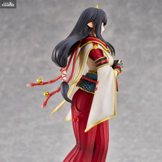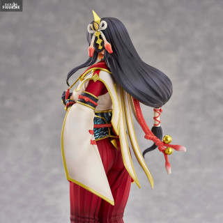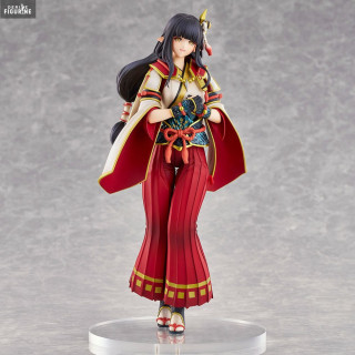 The Hinoa the Quest Maiden figurine by Union Creative perfectly captures her charm and elegance. She is dressed in her traditional, richly decorated costume, which combines elements of Japanese culture and the Monster Hunter universe. The details of her outfit, from the patterns on her kimono to the accessories attached to her belt, are finely sculpted and painted with remarkable precision.