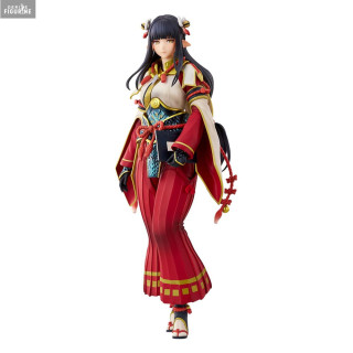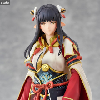 The Minoto the Hub Maiden figurine by Union Creative perfectly captures her charm and elegance. She is dressed in her traditional, richly decorated costume, which combines elements of Japanese culture and the Monster Hunter universe. The details of her outfit, from the patterns on her kimono to the accessories attached to her belt, are finely sculpted and painted with remarkable precision.