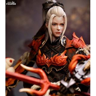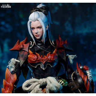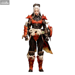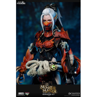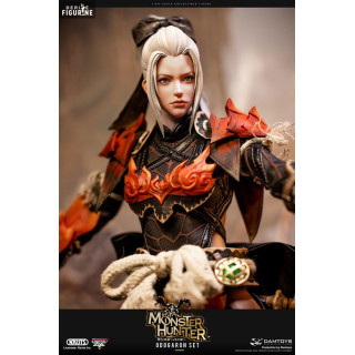 Unlike the Deluxe Edition, this standard version does not feature the detailed base and includes fewer accessories. However, it retains the essentials, offering an authentic and captivating representation of the Odogaron armor. The warrior sports a sleek hairstyle with a white ponytail, adding a striking contrast to the ensemble.