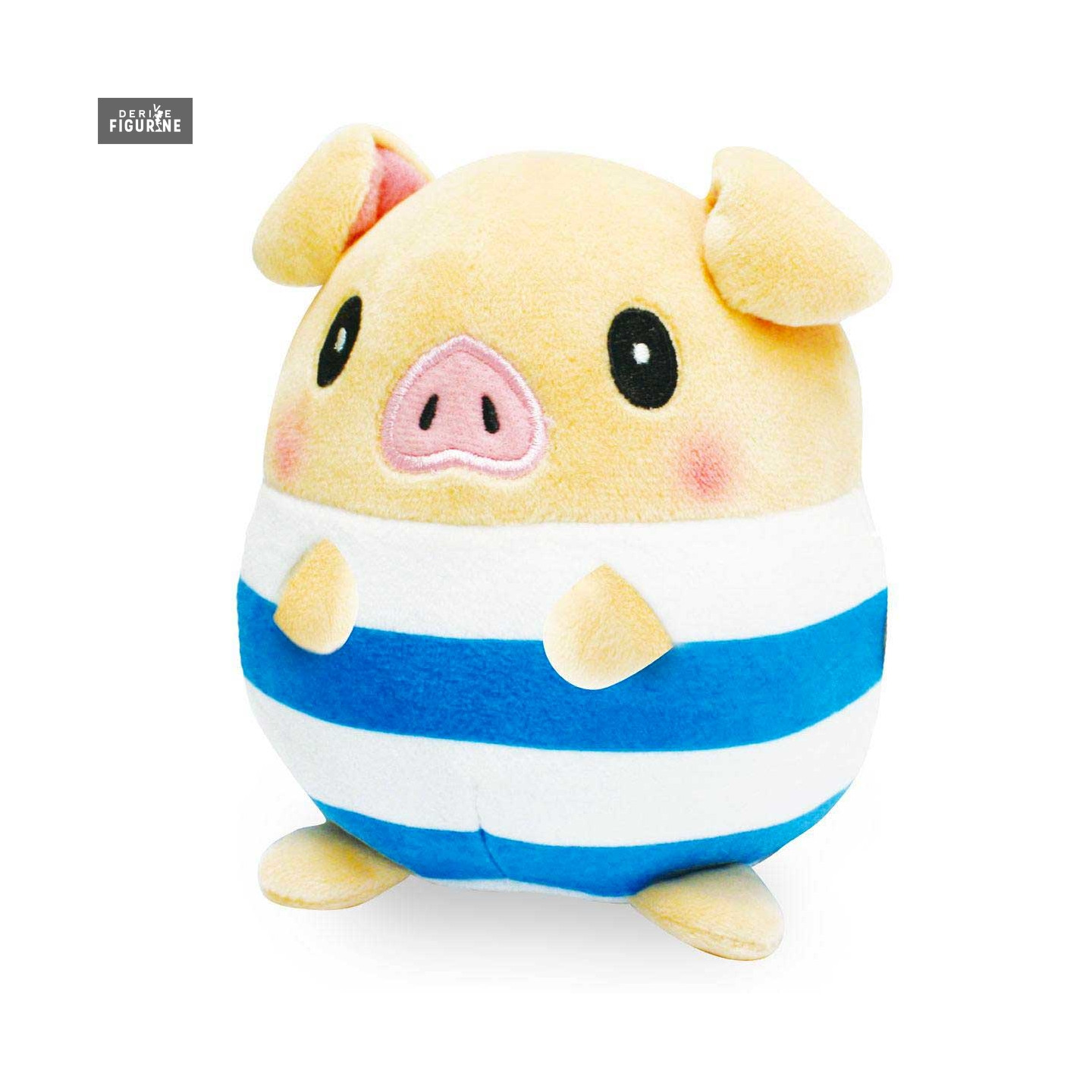 For those who do not know him, here is Pugi, an adorable little stuffed pig that comes to us from Monster Hunter video games. He wears a striped blue and white outfit and is so cute that he will conquer the hearts of young and old.