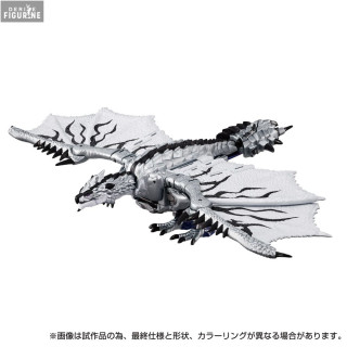 Official figure of Silver Rathalos Prime in plastic which measures approximately 13 centimeters high. The manufacturer is Takara Tomy.