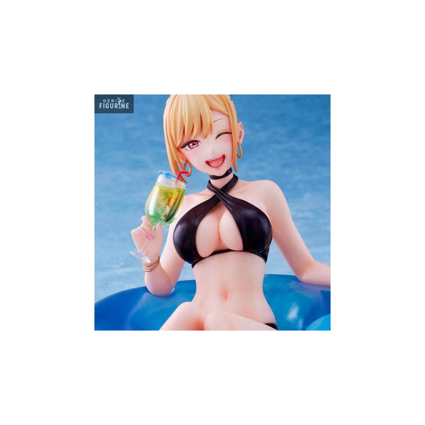 The Marin Kitagawa figurine from the "My Dress-Up Darling" series in the "Night Pool" collection is a piece that perfectly captures the refreshing summer atmosphere. Marin, with her short hair and casual look, is ready for a memorable evening at the pool. Marin Kitagawa, the queen of summer, comes to life with this exquisite Night Pool figure. She rests gracefully on an inflatable buoy, cocktail in hand, ready to dive into the cool of summer night. Her short hair adds to her casual charm, while her bright smile lights up the nighttime pool. The meticulous details of her light outfit are reminiscent of warm summer nights, while the gentle sea breeze seems to play with her hairstyle. This figurine captures the essence of summer, relaxation and joy, making it a must-have piece for collectors and fans of the series. Immerse yourself in the summer mood with Marin Kitagawa and enjoy every moment of that night at the pool." This figurine is a perfect addition to your collection to celebrate summer and the spirit of relaxation that comes with it.